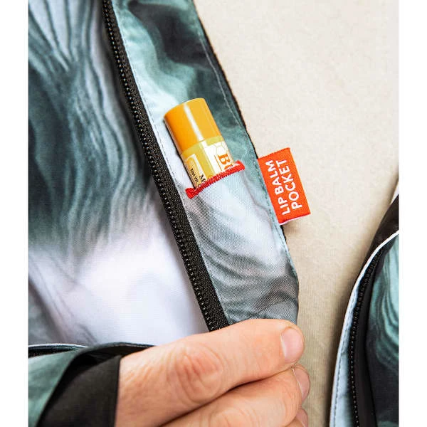 - 2 poches repose-mains zippées avec porte-clés, poche forfait zippée sur la manche, compartiment interne de rangement en mesh pour masque/bonnet, poche smartphone avec accès zippée avec passants pour câble