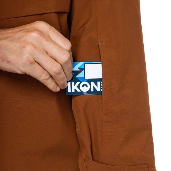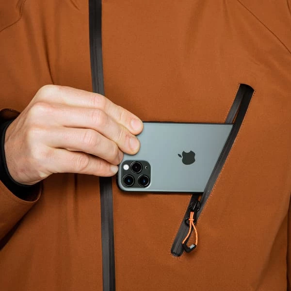 - 2 poches repose-mains zippées avec porte-clés, poche forfait zippée sur la manche, compartiment interne de rangement en mesh pour masque/bonnet, poche smartphone avec accès zippée avec passants pour câble