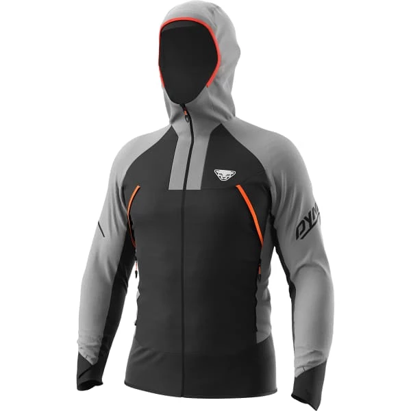 Légère et très respirante mais aussi hydrofuge, cette veste est dotée d’une construction hybride qui profite des propriétés des technologies Dyna Stretch pour l’aisance gestuelle et Dyna-Shell Windproof pour l’imperméabilité. Des inserts extensibles sont en effet ajoutés à sa matière polyester principale. Cette veste fait également le plein de fonctionnalité avec la présence de multiples détails bien pensés comme un système de ventilation, une capuche, des poignets élastiques avec passage pour le pouce et de grandes poches spécialement conçues pour les peaux.